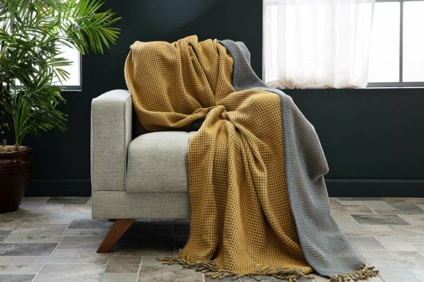 Doqu Home Battaniye Çift Kişilik Skoç - Hardal