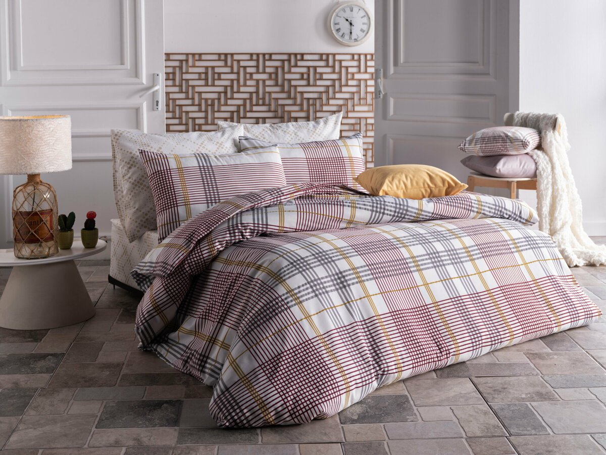 Kırmızı rengin ağırlıkta olduğu ekose desenleri ile klasik tasarımın modern detaylarla hoş bir şekilde tamamlandığı bir model olarak ön plana çıkan Polycotton Marvello çift kişilik nevresim takımı, dış etkenlerin yorganlara, yataklara ve yastıklara zarar vermelerini engellemesinin yanı sıra yatak odalarını şık bir görünüme kavuşturmaya da imkân tanıyor.
